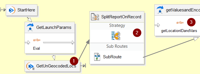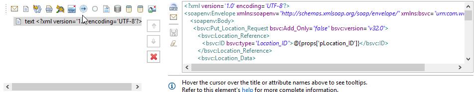 The first thing we need to do is use a RaaS Workday Out to get the report details we need into some properties in studio. Next I split the message up by report entry, this allows us on the push side to submit each message to Google individually. Then, I grab the Location ID, address values, name, and a few other requirements like the location hierarchy assignments. Why? I learned when I did this via EIB those are the minimum requirements to put the location back into Workday. YMMV, be sure to find out what you need.