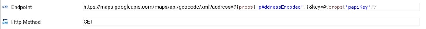 We're getting to where the rubber meets the road. After some experimentation, I learned that if the address is not URL encoded (i.e. - we replace the spaces with + in the URL), the call fails. I write the address to a variable using a write step and use java.net.URLEncoder.encode to properly encode the URL. Then I submit the entire string to google.